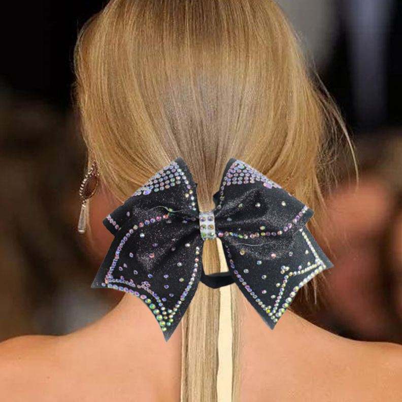 Red and Black Rhinestone Tailless Cheerleading Hair Accessory Glitter Bow Tie and Cravats