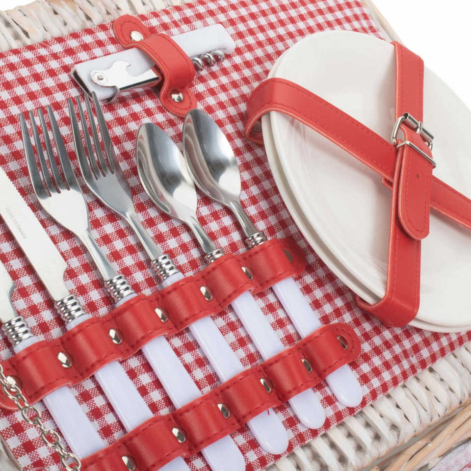 Red and White Vichy Checkered Wicker Picnic Mat for 2 People Durable Osier Woven Basket