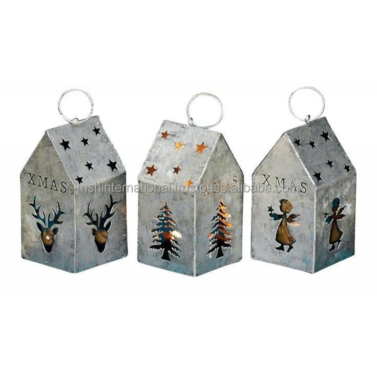 Red Black House Design Candle Holder Home Decorative Vintage Metal Lantern with House Patter