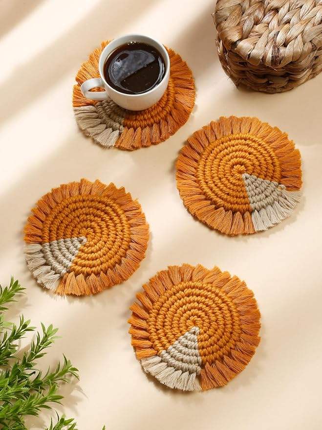 Custom Round Orange and white Macrame Coaster Red Cotton Cord Handmade Kitchen Accessories Drink Protector for table