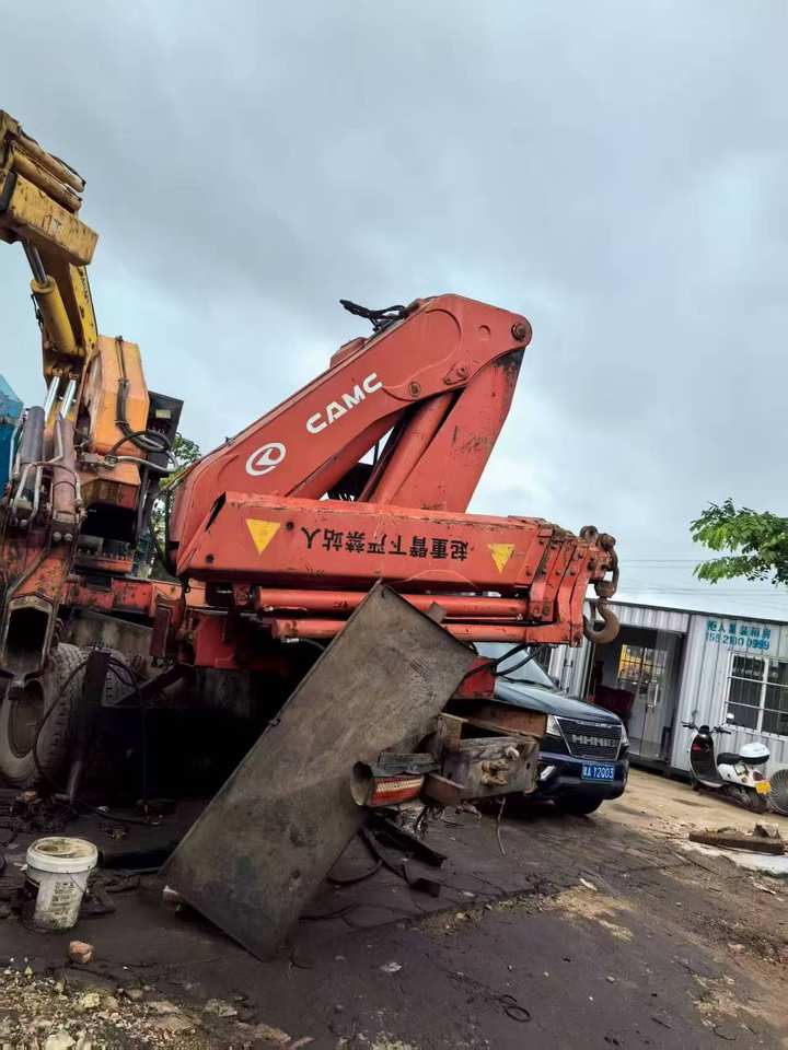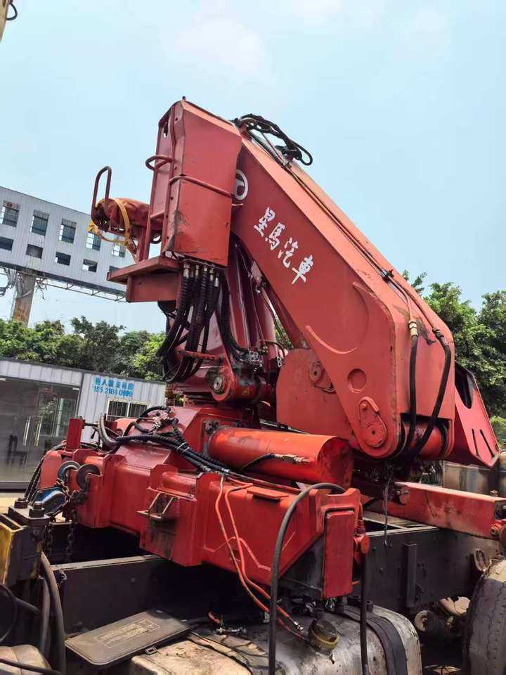 Red truck with crane (20-ton capacity) for sale at a low price.