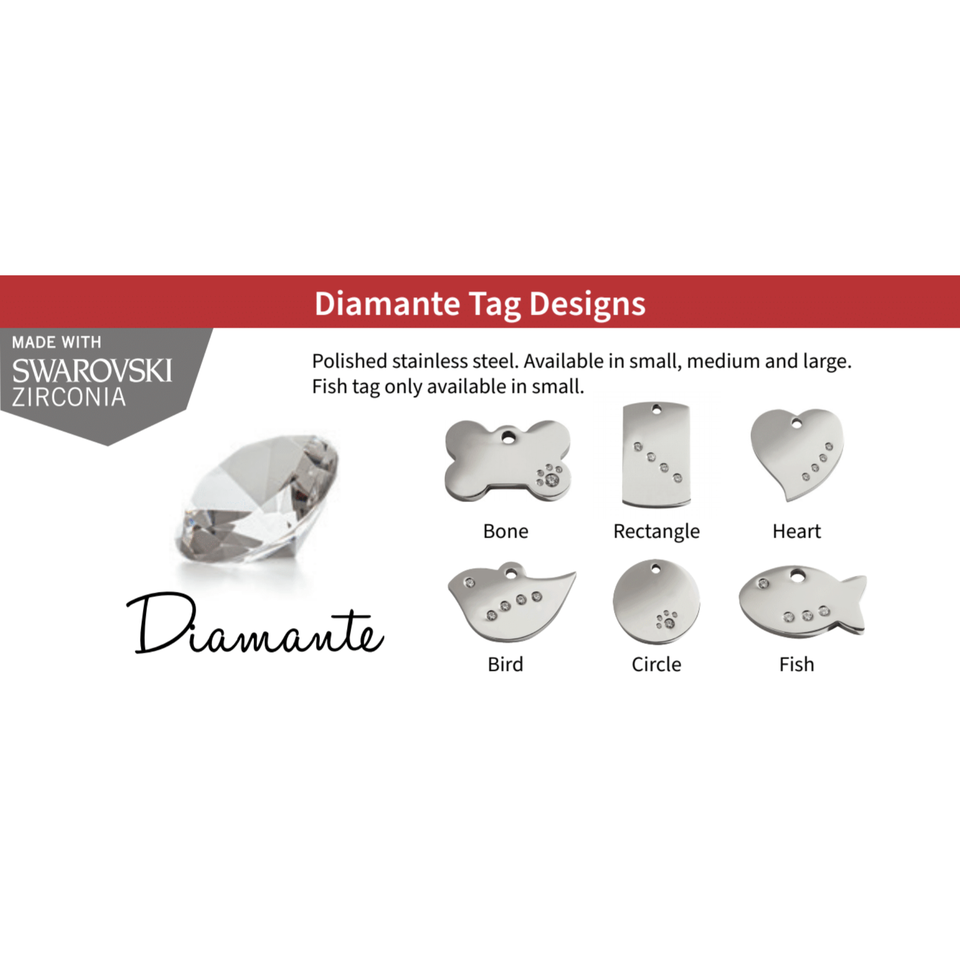 RedDingo Pet ID Tags - Diamante Tag Designs - Made with Swarovski Zirconia and Stainless Steel - Fish (S)