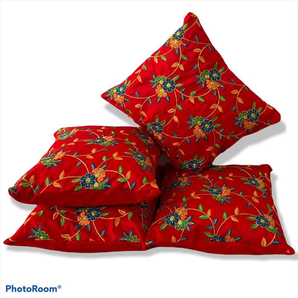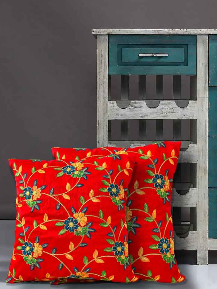 Handmade Indian Reddish Suzani Embroidered Cushion Cover Woolen Pillow Cover in Silk and Cotton for Home or Hotel Use
