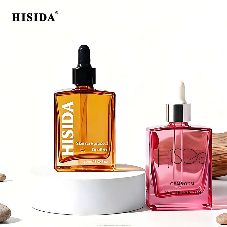 Refillable 50ml Square Empty Cosmetic Bottle Amber Clear 30ml 100ml Rectangular Brown Glass Serum Dropper Bottles With Lids
