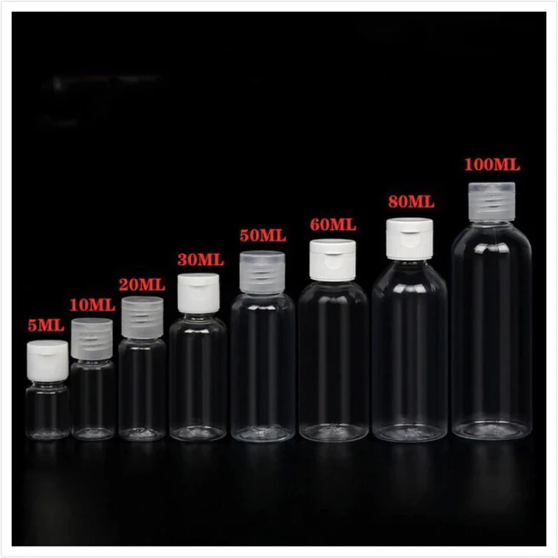 Refillable PET Plastic Bottles with Nozzle Cap Twist Cap Flip Cap Pump Cap for Serum Essential Oil Cosmetic Liquid Packaging