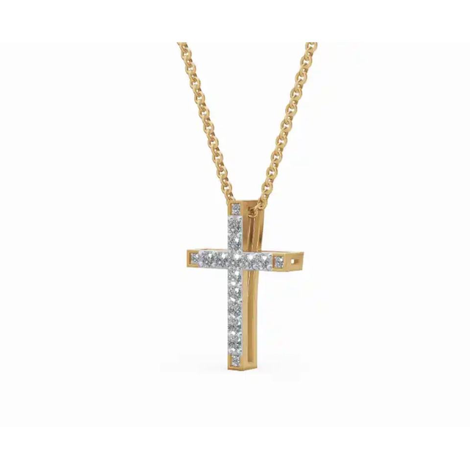 Refined Aurelian Cross Lab Grown Diamond Pendant Round Cut 0.200 Ct 9 KT 14 KT 18 KT Gold Wholesale OEM Fine Jewelry Supplier