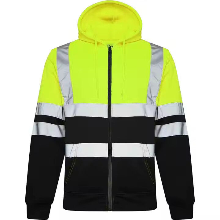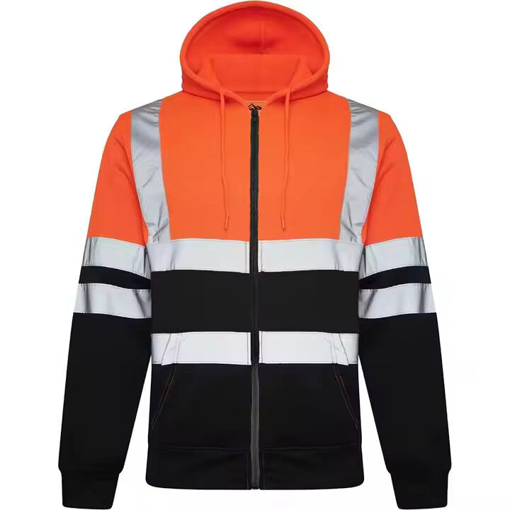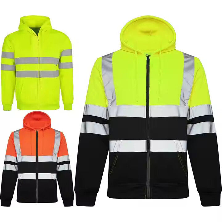 Reflective High Visibility Hooded Safety Jacket Canvas Waterproof Breathable for Men with Night Vision Front Logo Safety Jacket