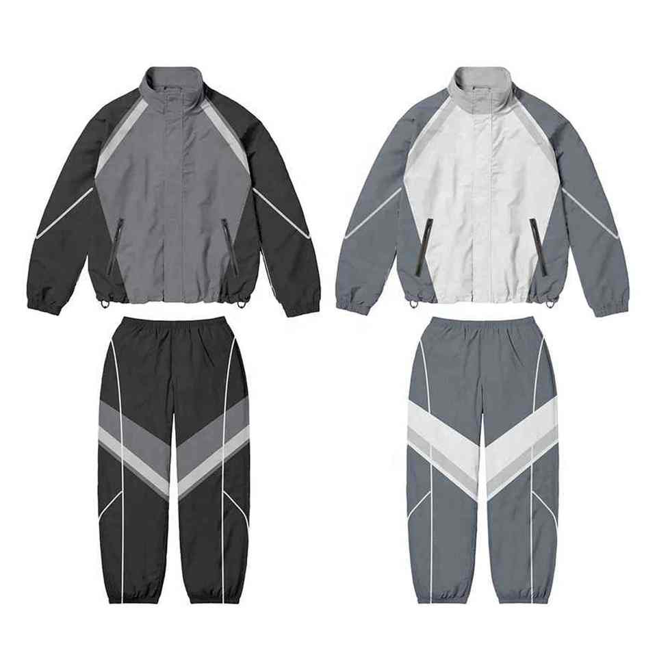 Reflective Wholesale Windbreaker Tracksuit and Sweat Pants Set Crewneck Jogger Set Streetwear Wind Breaker Nylon Tracksuit
