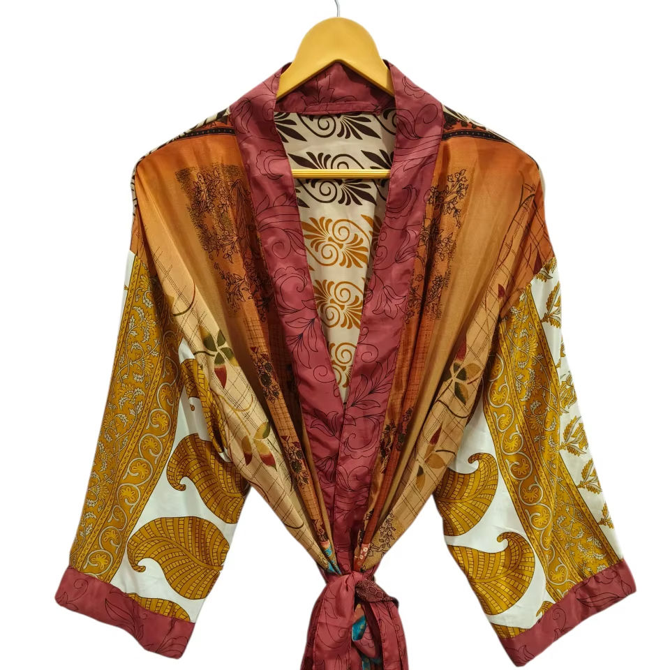 Regal House Wear Soft Silk Bathrobe Multi Color Robe Night Wear Robe Indian Vintage Recycled Silk Sari Kimono,