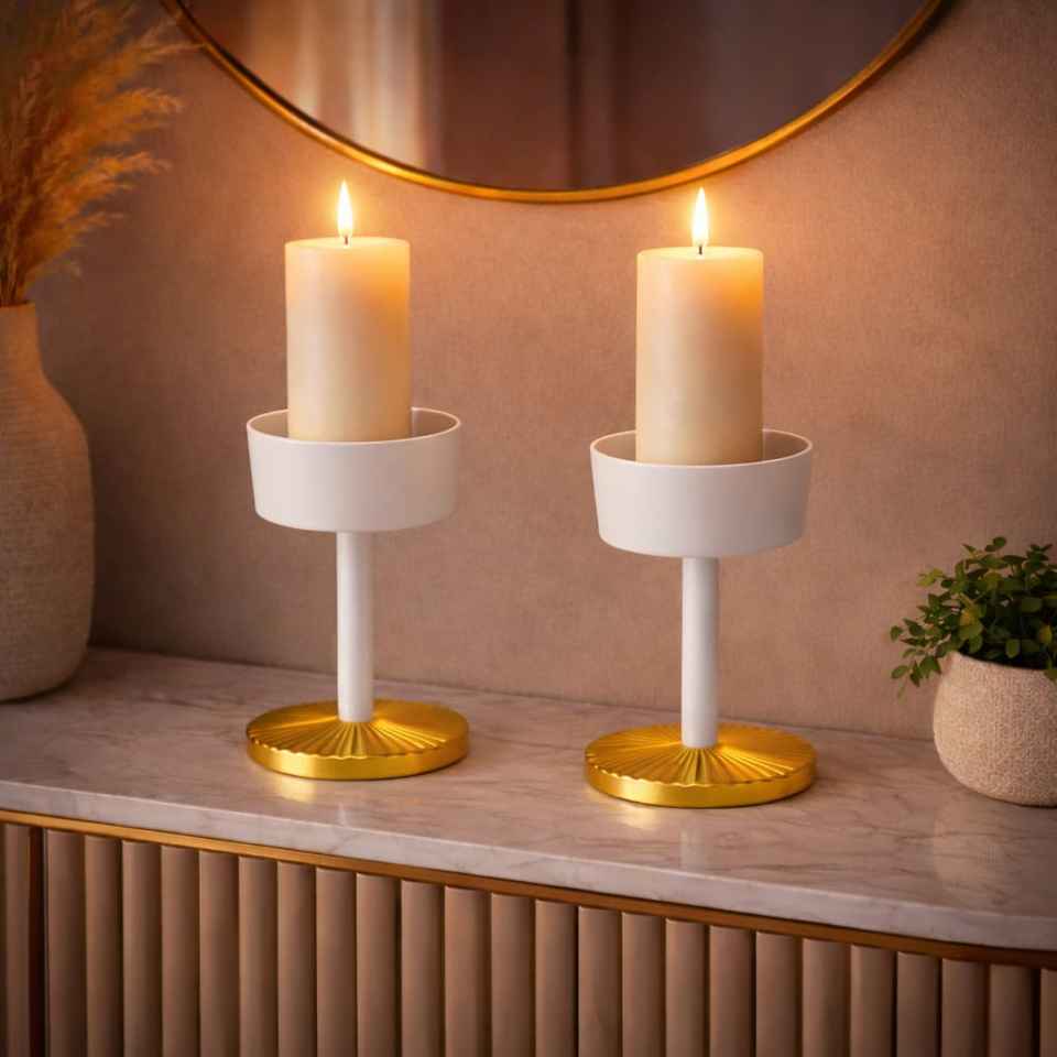 Regal Ivory Pillar Heirloom Gold Accent Classic Lumi Candle Holder Whitecrest Gold The Versailles Holder