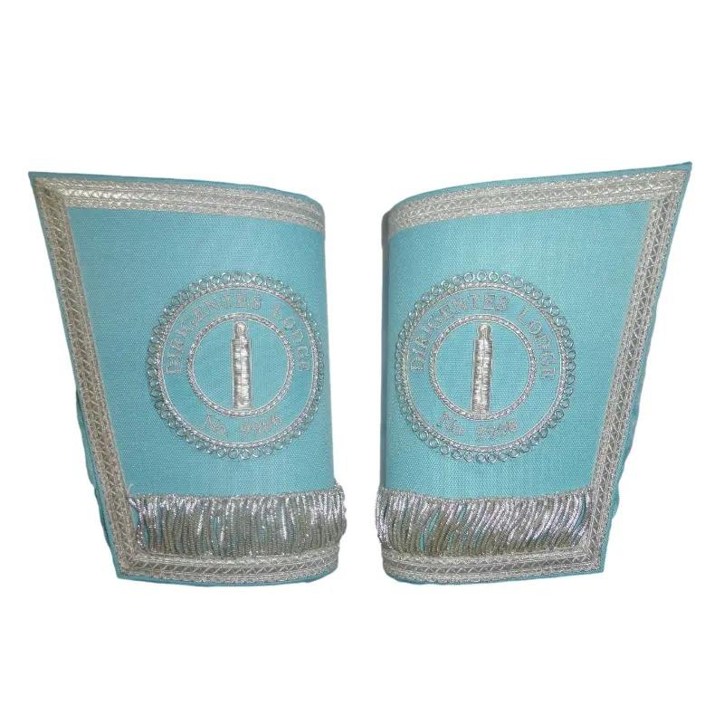 Regalia Cuffs Masonic Regalia Lodge Uniform Gauntlet Cuffs Embroidered Canvas Fabric Plain with Silver Fringe and Custom Logo