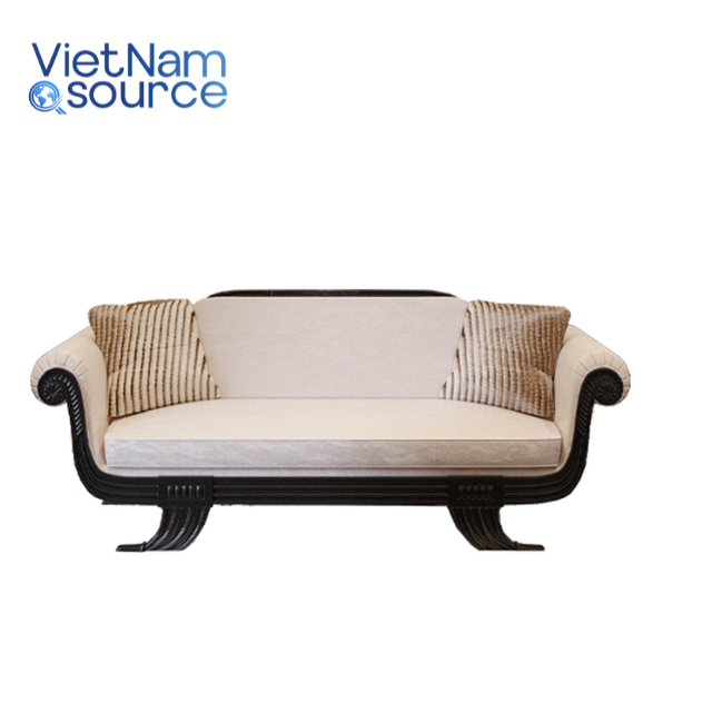 Regency Grandeur Artisan Crafted Fabric Sectional Sofa Set-Luxe Ivory Upholstery D40 Foam Comfort Matte Black Finish for Dining