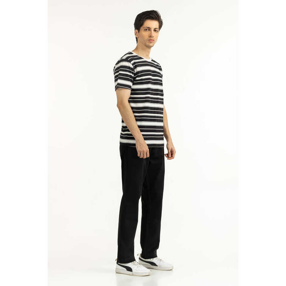 Men's Regular Fit Breathable Anti-Wrinkle Oversize Short Sleeve Black-White Solid Pattern Custom Label 260 Gsm Knitted T-Shirt