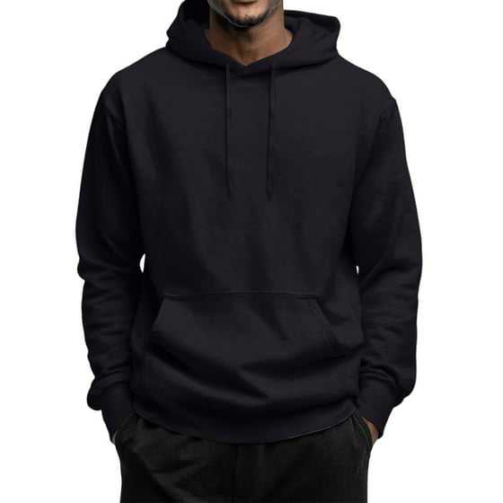 Regular Fit Hooded Sweatshirt Men Lightweight Autumn Solid Streetwear Fleece Pullover Sweater with Pockets