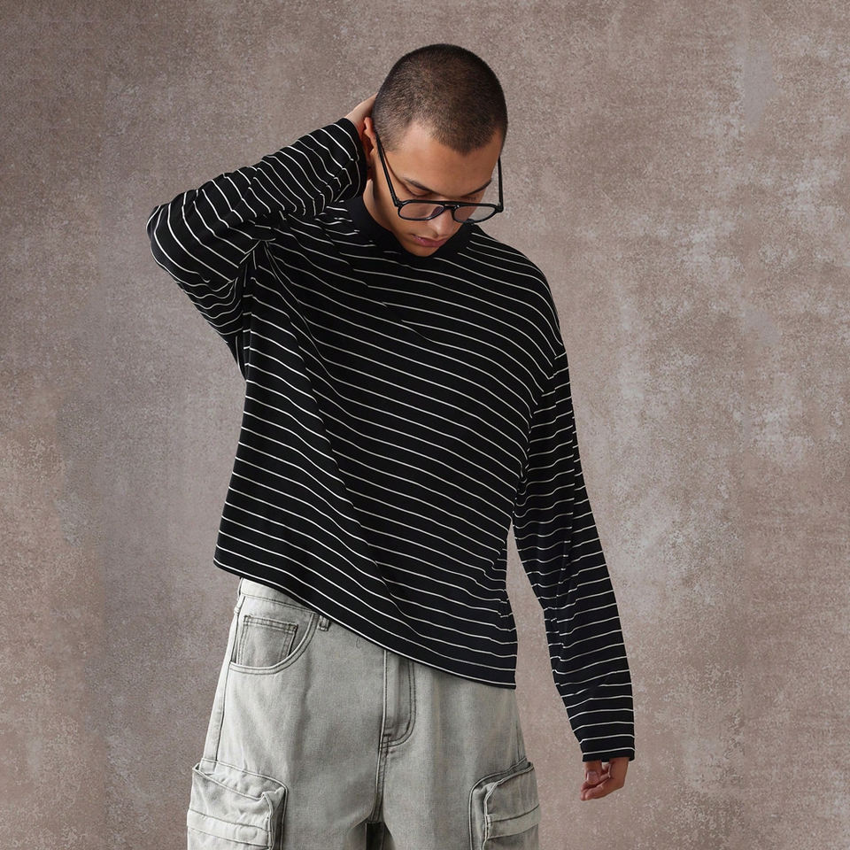 Regular Fit Long Sleeve Striped T-Shirt Casual Streetwear Classic Tee Autumn Winter Everyday Loungewear Top Full Sleeve Shirt