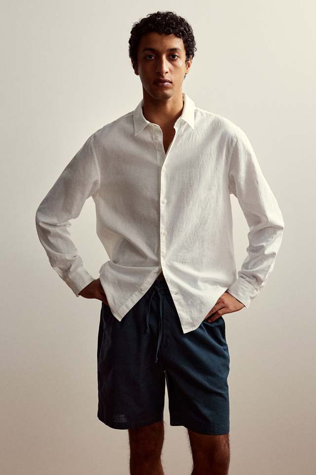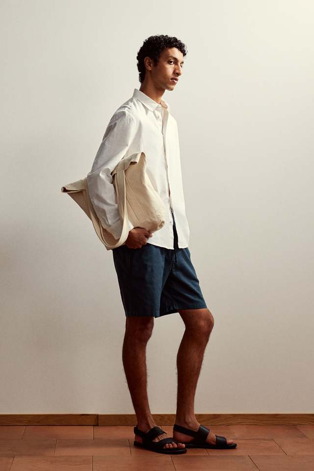 Regular Fit Top Quality Men's Cotton &Linen Blend Textured Fabric Shorts With Elasticated Drawstring Waist Diagonal Side Pocket
