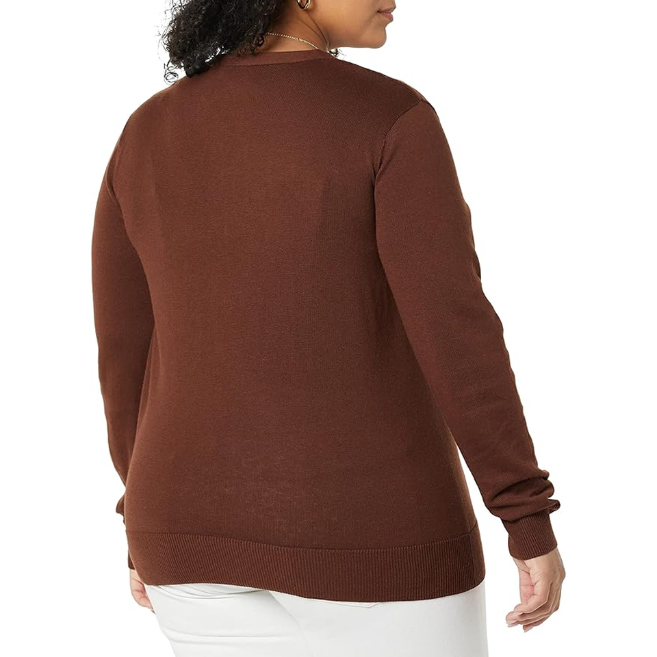 Regular and Plus Size Long-Sleeve V-neck Button-up Sweater Women's Lightweight Breathable 100% Cotton Women's Sweater