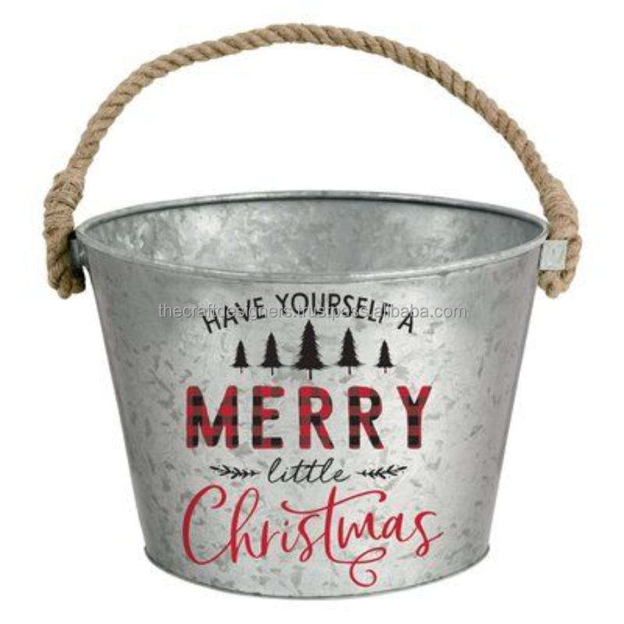 Reindeer Coal Bucket Holiday and Christmas Decoration Planter Metal Christmas Decorative Bin Garden Bucket Galvanized Planters