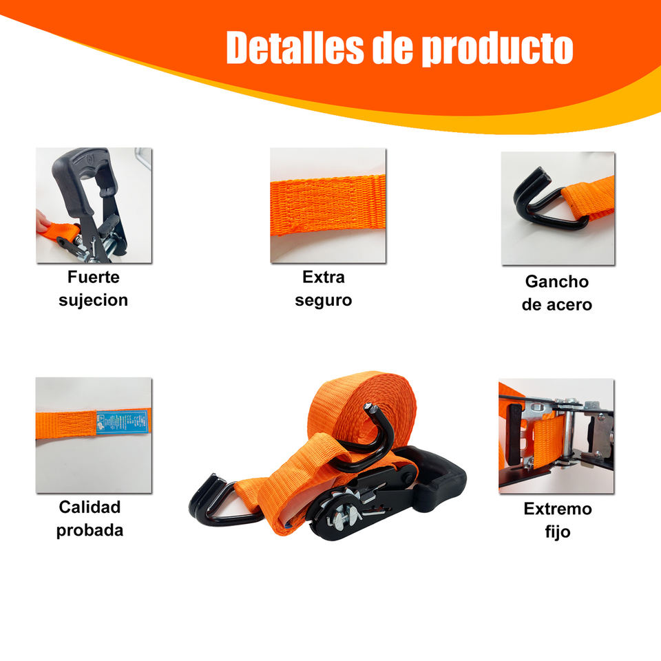 Reinforced 32mm X 5m Ratchet Tie Down Strap with Hooks Polyester Lashing Strap for 660KG-1320KG Capacity GS Certified-024731