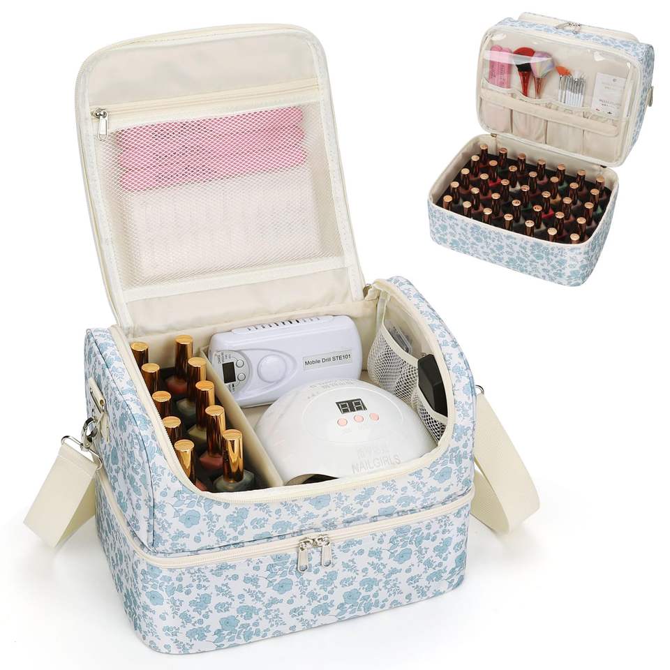 Relavel Fashionable Portable Zipper Tote Nail Supply Organizer Large Capacity Nylon Bag Flower Design Foldable 45 Bottles