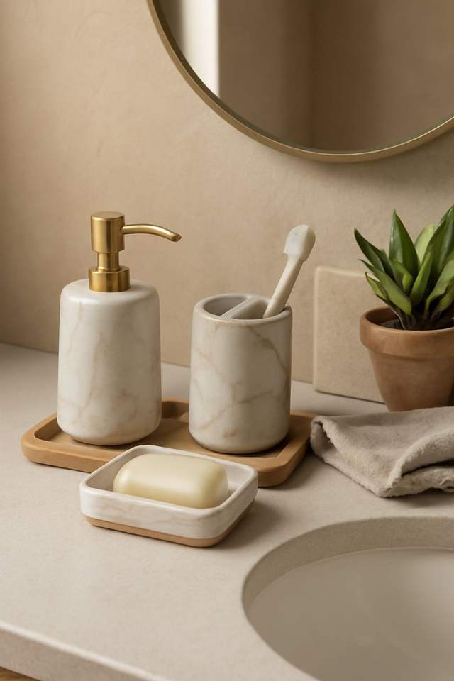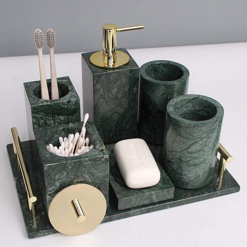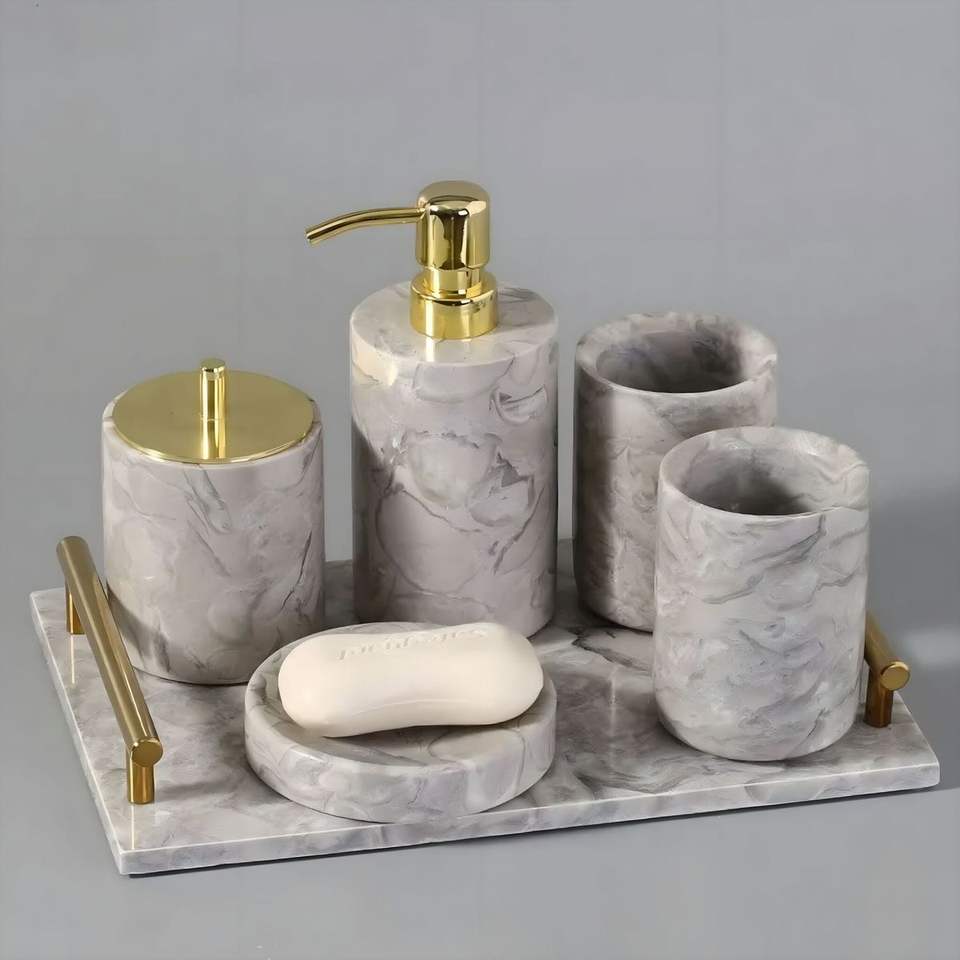 Reliable Manufacturer Multi Piece Marble Bathroom Set For Large Bathrooms Providing Coordinated Accessories For Daily Use