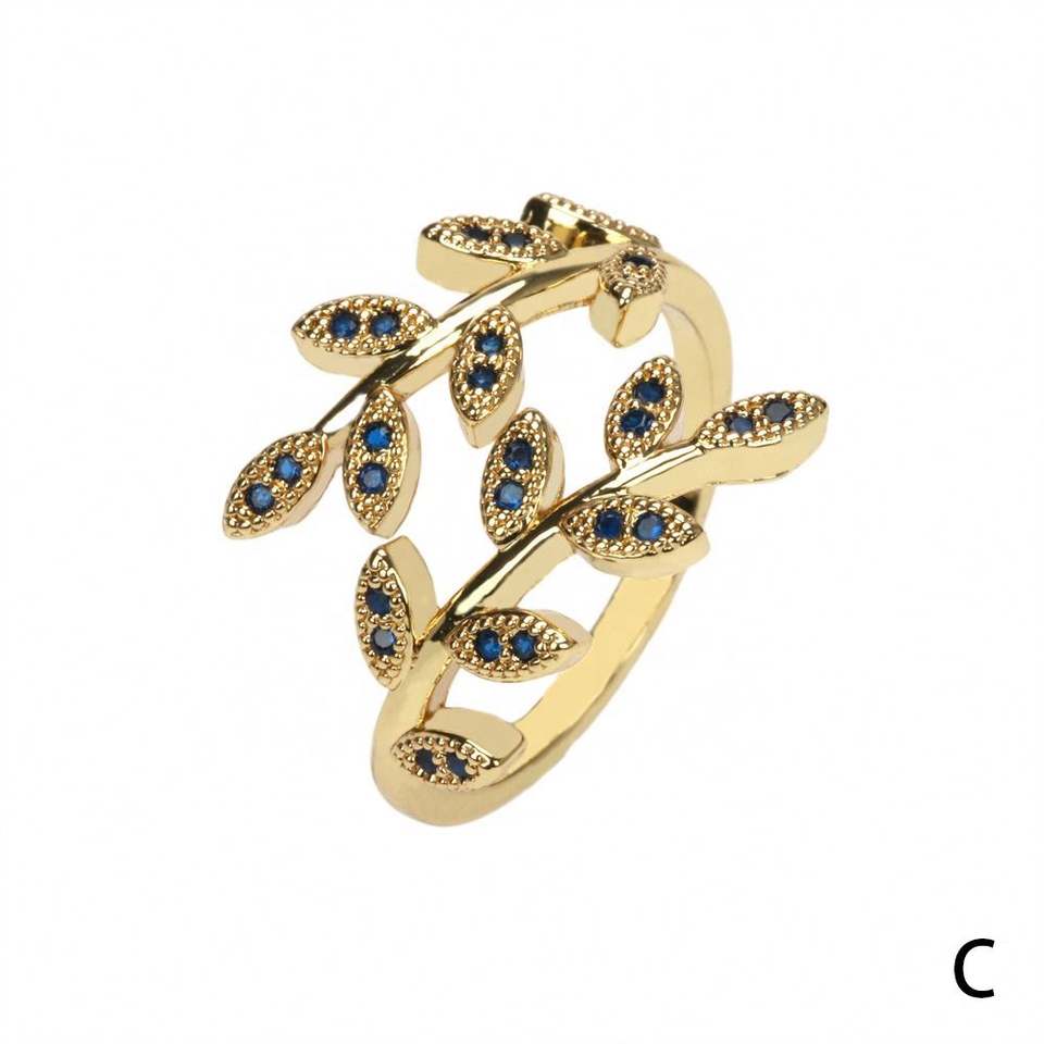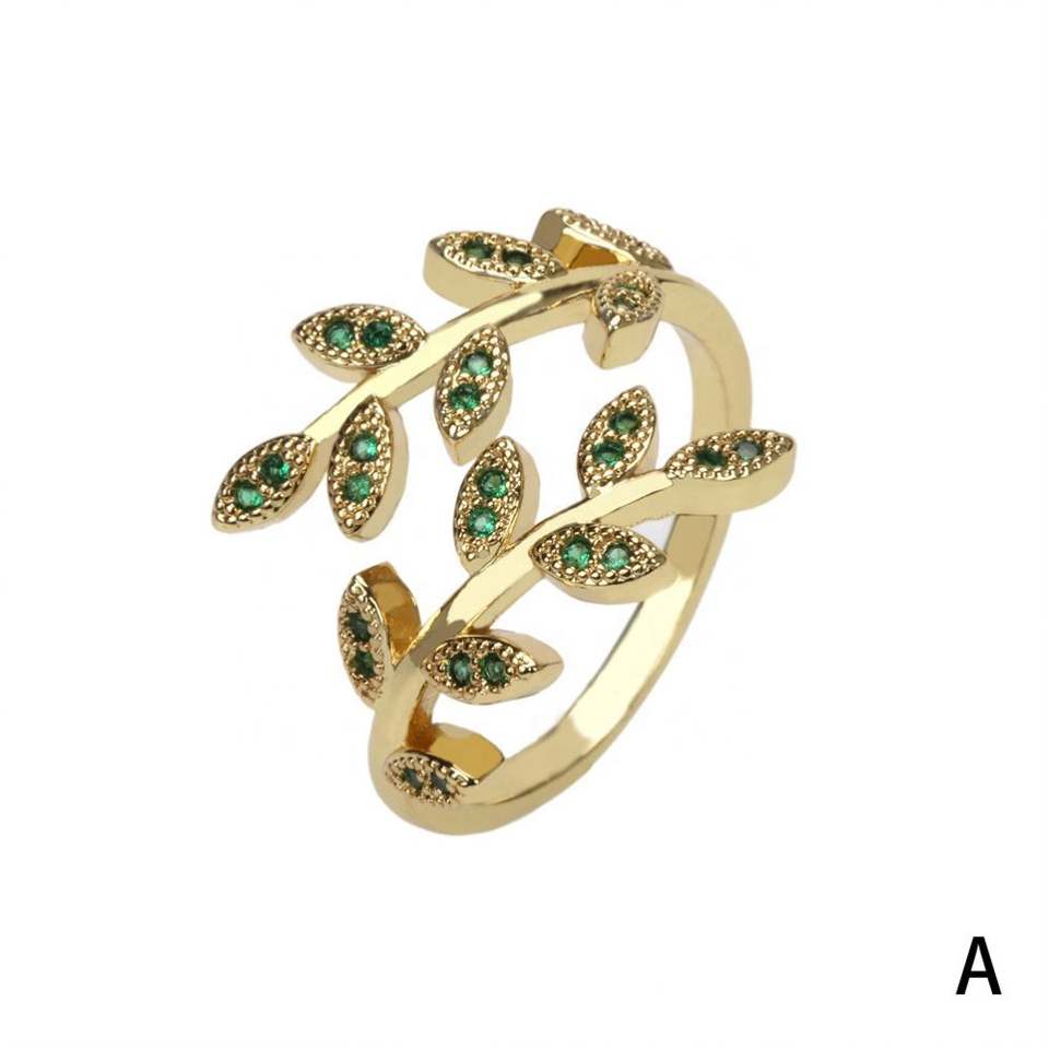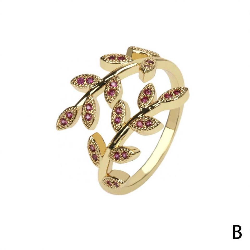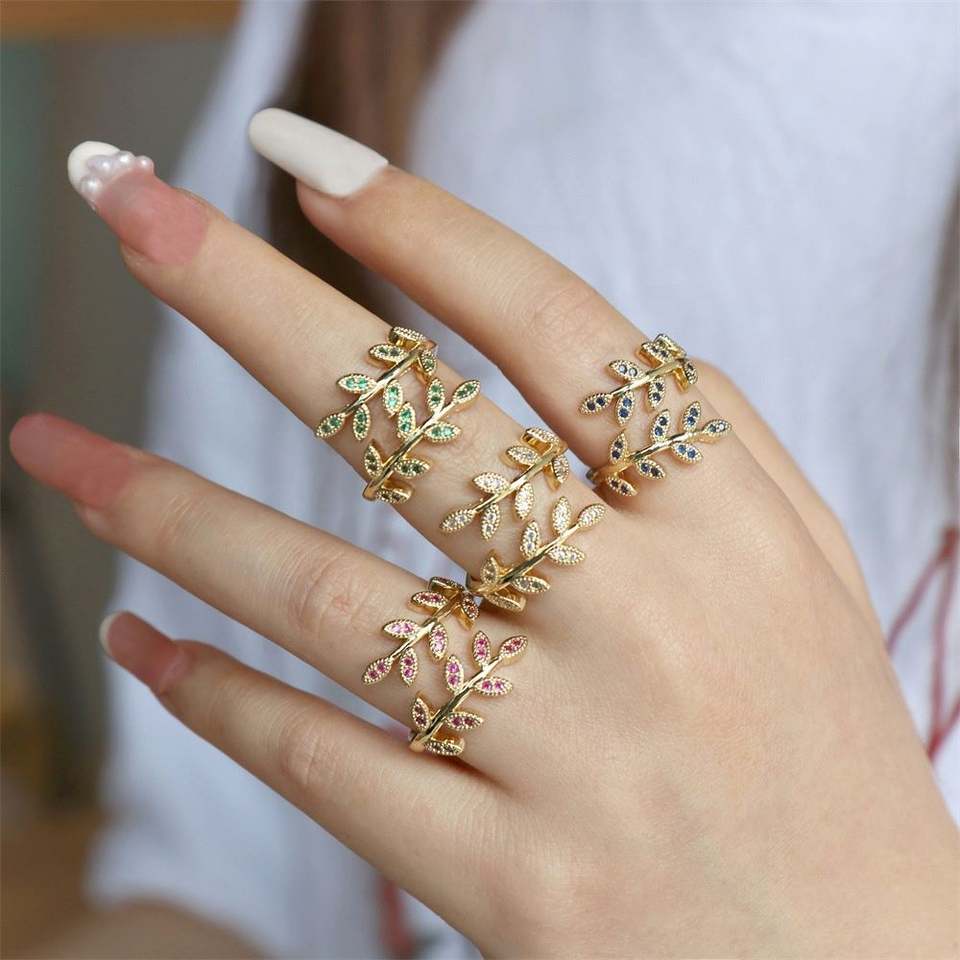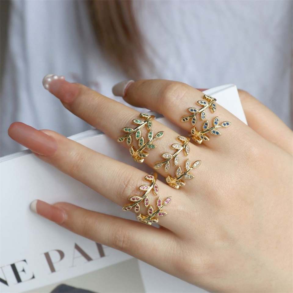 Reliance China Supplier Gold Plated Colorful Cubic Zirconia Leaf Open Rings for Anniversary
