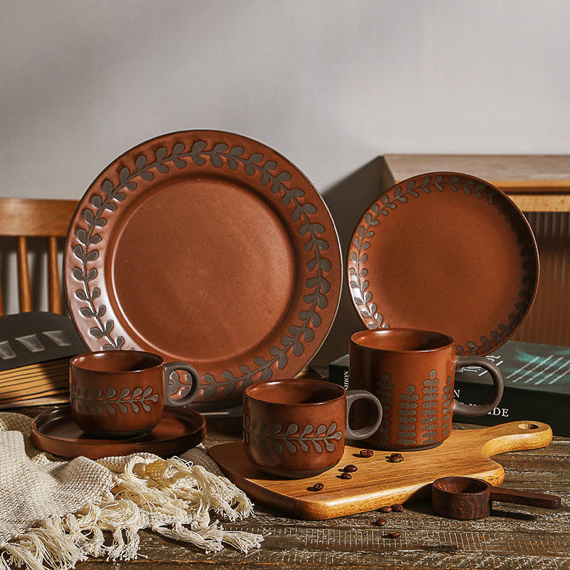 Relief Vintage Ceramic Mug American Ins Lace Coffee Cup and Saucer Set