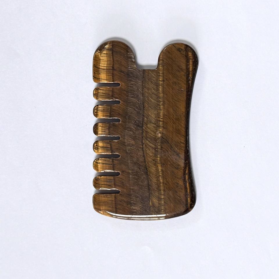 Relieve fatigue Wholesale Natural Tiger's Eye stone Head Massage Comb Jade Gua Sha Comb