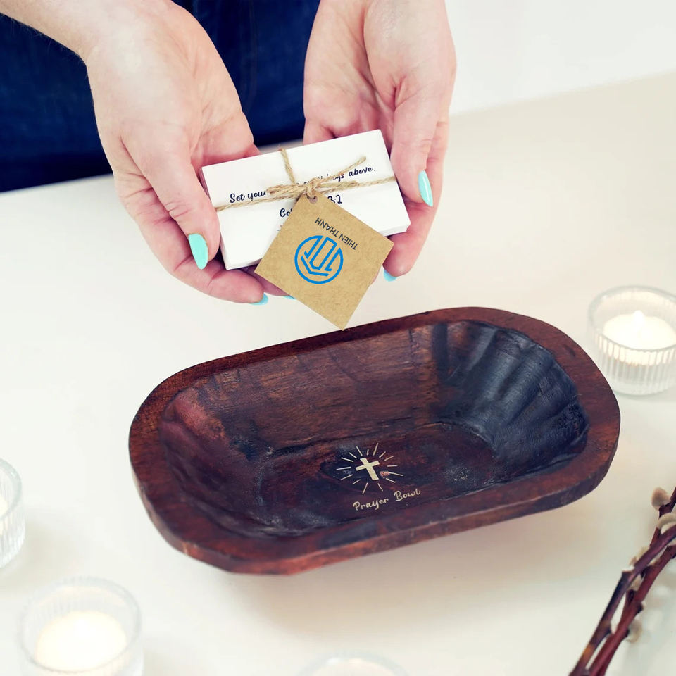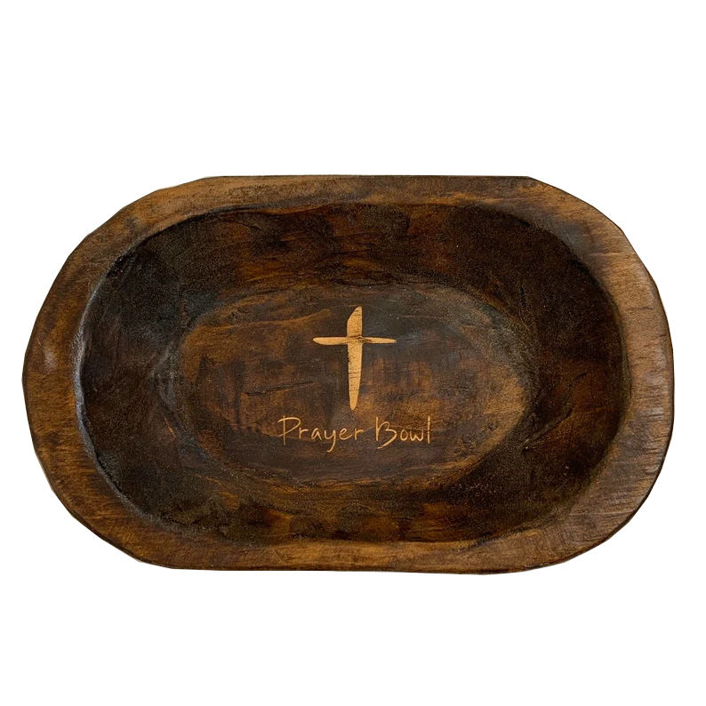Religious Gifts Vietnam Factory Wooden Prayer Bowls with Cross Laser Acacia Dough Bowl Rustic for Thanksgiving Easter Gifts
