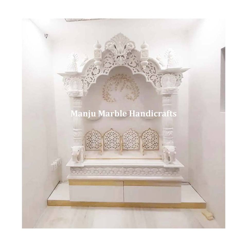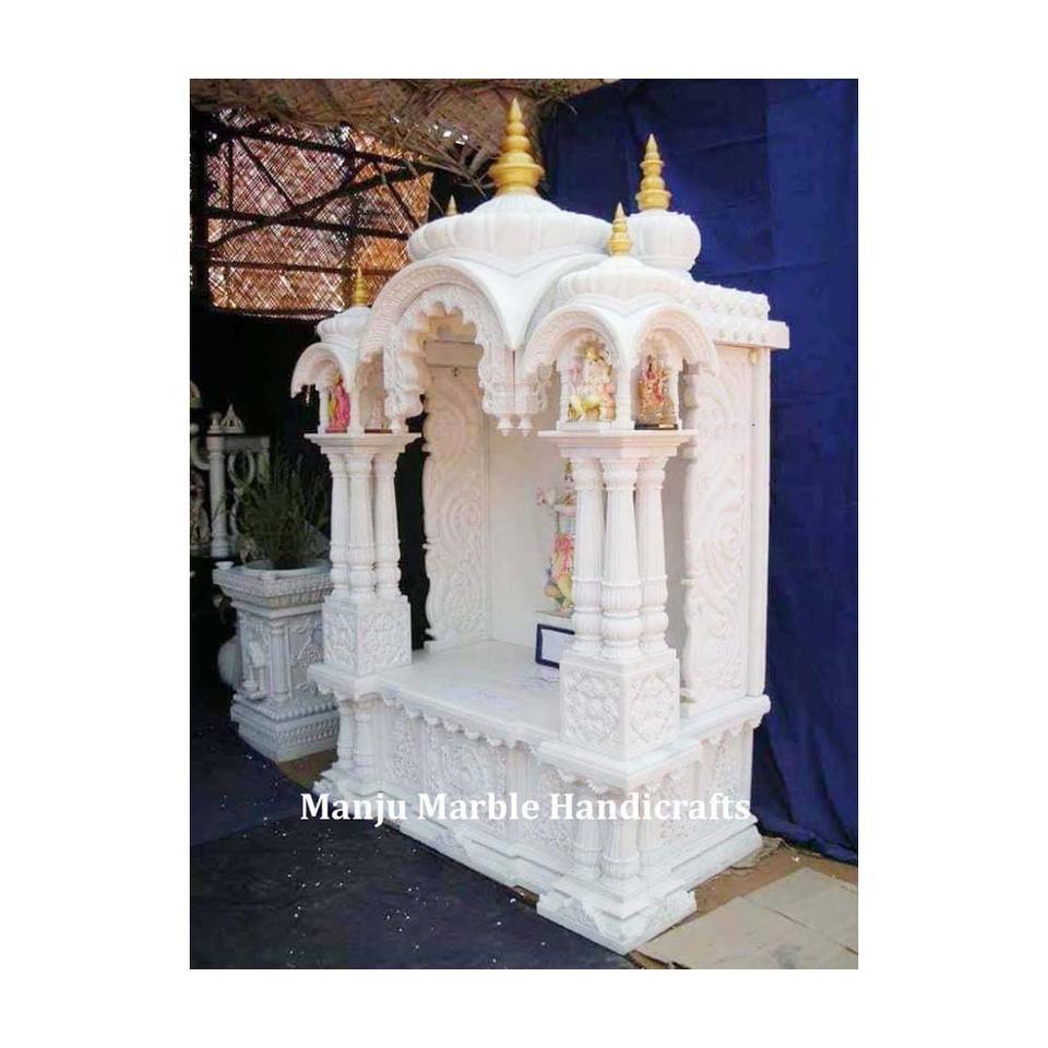 Religious Handmade Product Top Class White Marble Inlay Temple With Handmade Polished Natural Curved Product For Home Decoration