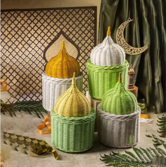 Religious Rattan Basket Mosque Dome Characters Mosque Dome Rattan Eid Rattan Baskets Handmade