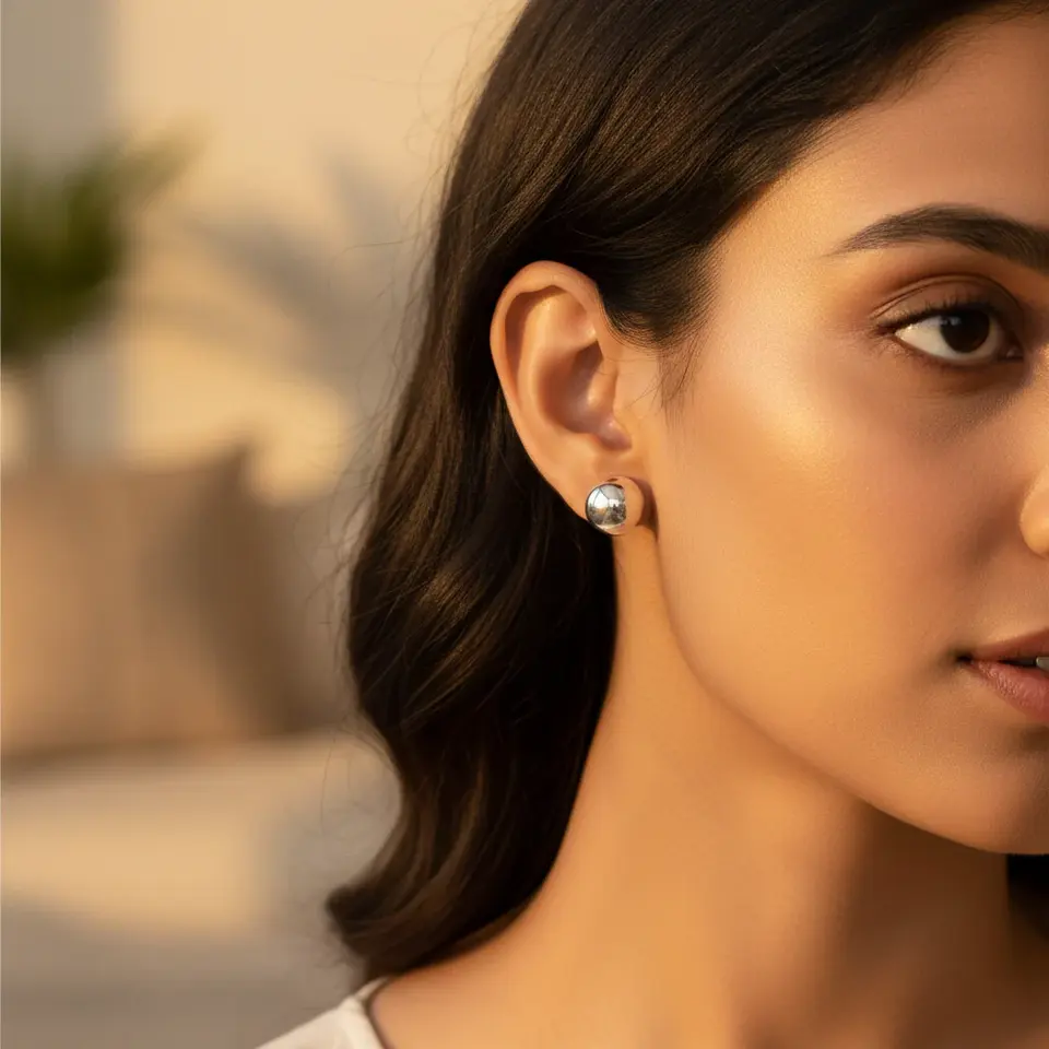 "Religious Round Silver Stud Earrings for Women-Brass & Rhodium Plated"