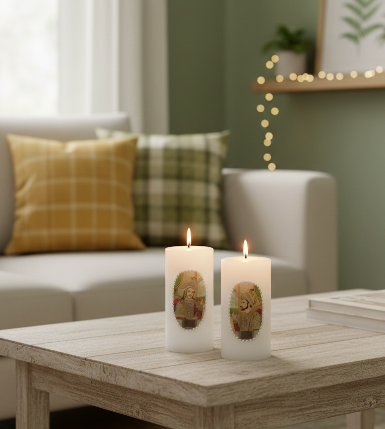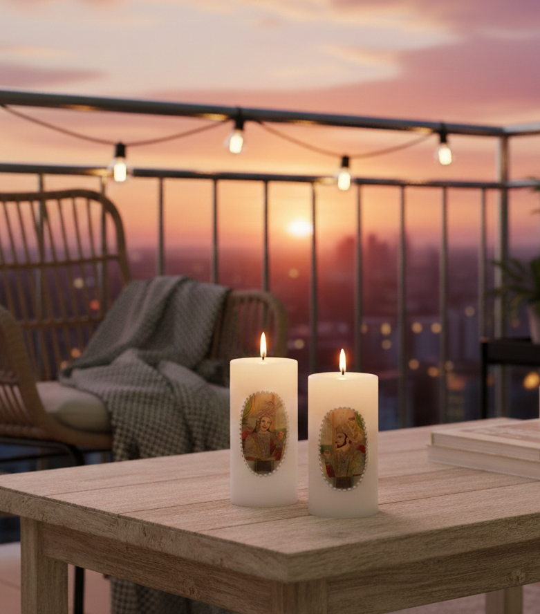Religious Soy Wax Pillar Candles 2 Set-Handcrafted Eco-Friendly Spiritual Home Decor for Christmas & Halloween Festive Occasions