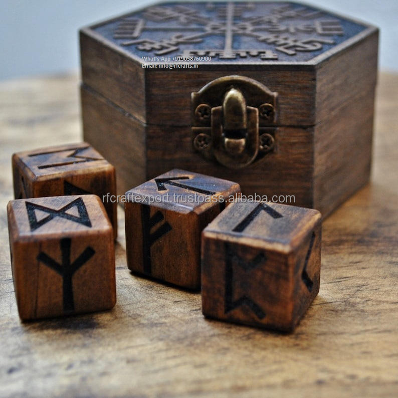 Religious Style Mini Wooden Jewelry Box/Casket the Helm of Aegishjalmar Themed Made of Teak for Business Gifts with Runes