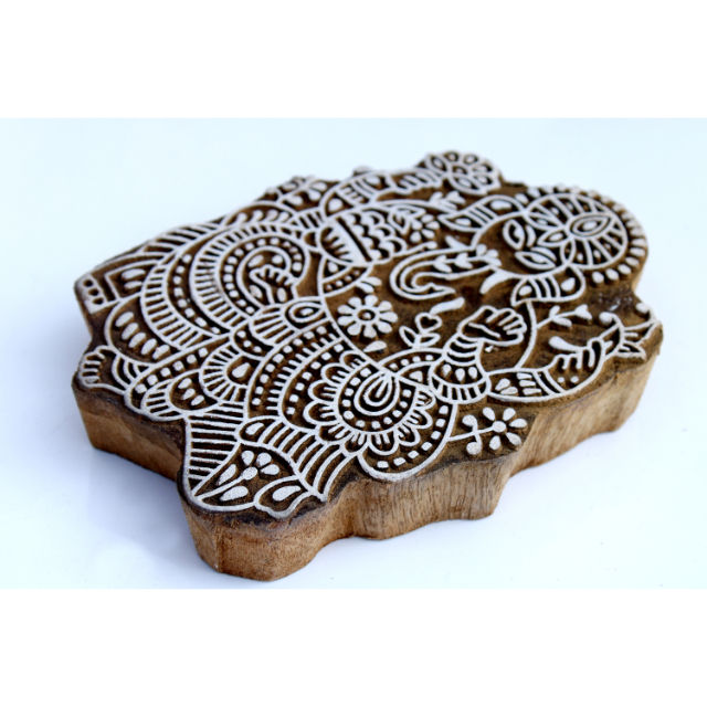 Religious Wooden Hand Carved Printing Blocks with Lord Ganesha Pattern 6x4 Inch High-quality Decorative Art