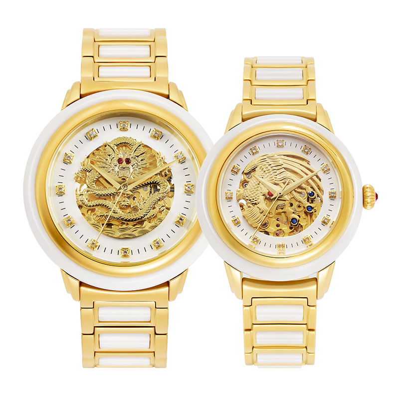 Reloj Dragon and Phoenix Luxury Original Couple Automatic Mechanical Watch Natural Jade Montre