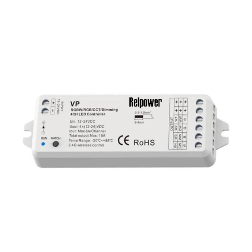 Relpower 4 Channel LED Dimmer Controller 12V 24V DC Wireless 2.4G RGBW RGB CCT Dimming