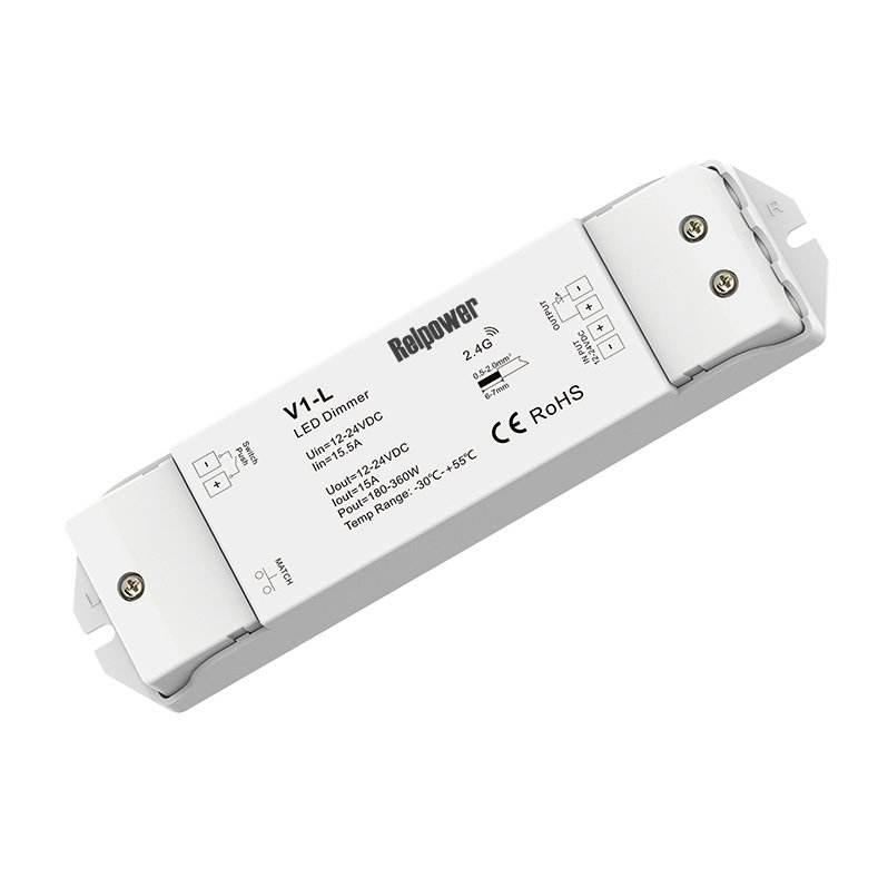 Relpower V1-L Led Dimmer 12-24Vdc 15A 360W 2.4Ghz Wireless Control 1 Channel RF Dimmer For Led Lights