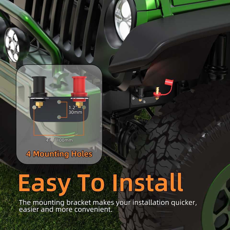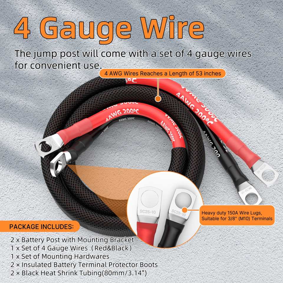 Remote Battery Jump Post Kit 4AWG 4FT Cable M10 3/8 Bottom Studs Marine Use