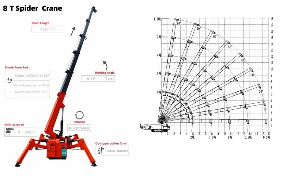 12ton 10ton Spider Crane Remote Control Mini Telescopic Cranes Foldable 8 Ton 5 Ton Lifting Kama Engine Moog Hydraulic Cylinder