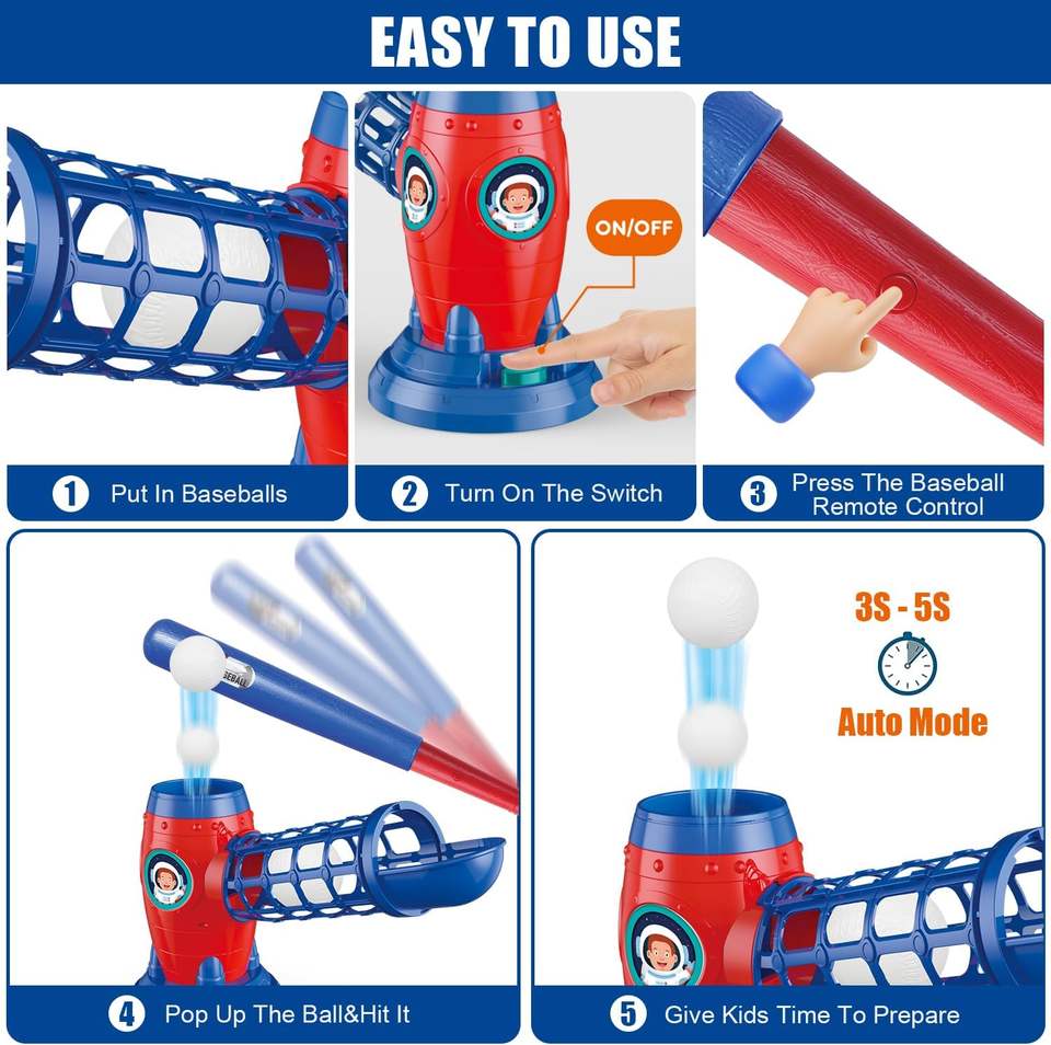 Remote Control Baseball Pitching Machine Toddler Tee Ball Set for Outdoor Sports Training Game to Practice Swing and Hit