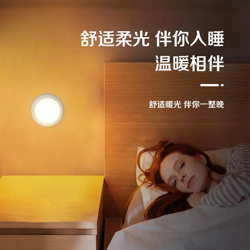Remote Control Night Light Round Battery Powered Dimmable For Bedroom Study Eye Protection