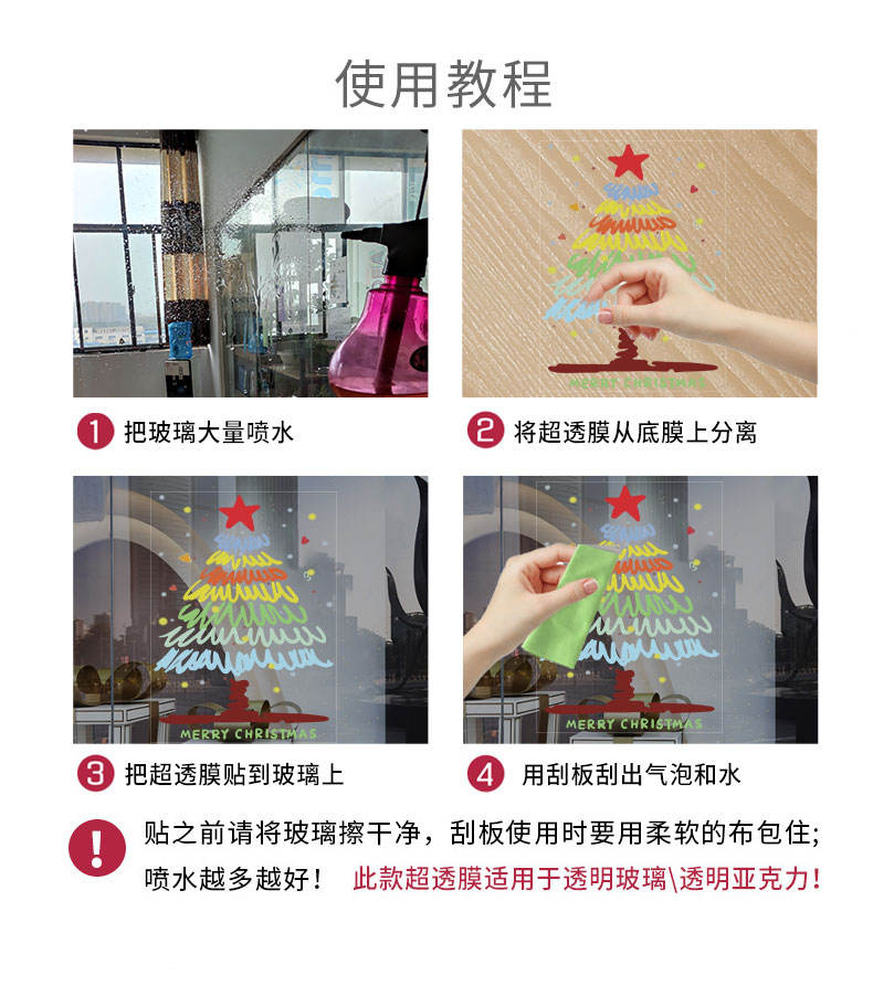 Removable Christmas Window Sticker Static Cling Transparent Decal Shop Glass Doors, Holiday Decoration for Café Storefront Home