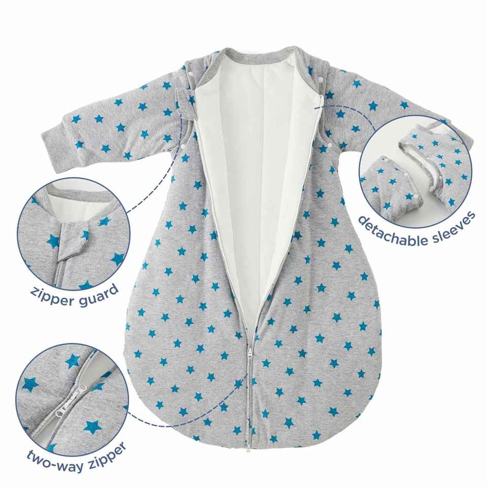 Removable Long Sleeves 100% Organic Cotton Sleep Sack Newborn Infant Toddler