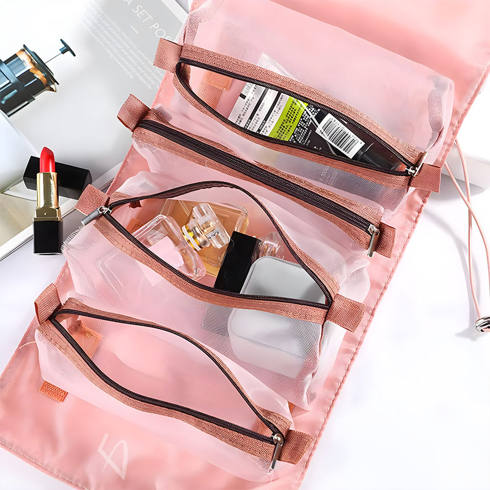 Fashion Nylon Cosmetic Bag with Zipper Closure, Portable Travel Case for Personal Care Items, Medium Size, ELEGATE Brand