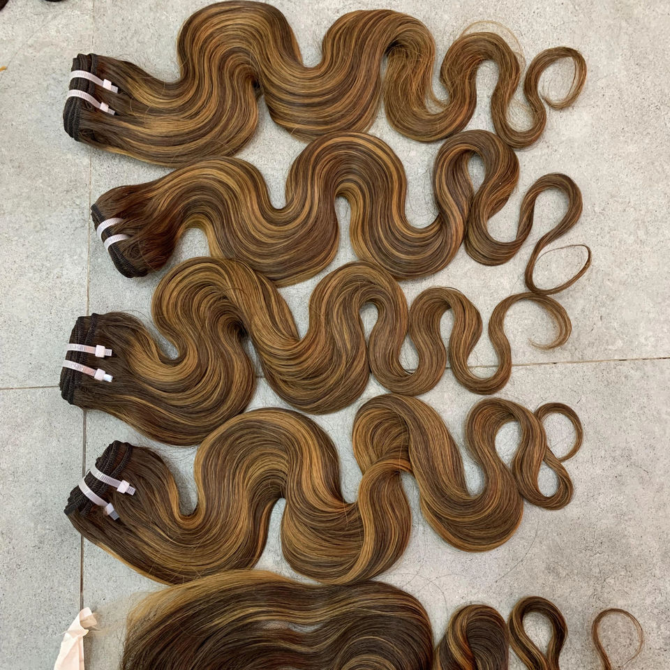 Remy Super double drawn Body Wavy Hair Brown Color Vietnamese Body Wave Machine Weft 100% Vietnamese Human Hair Extension