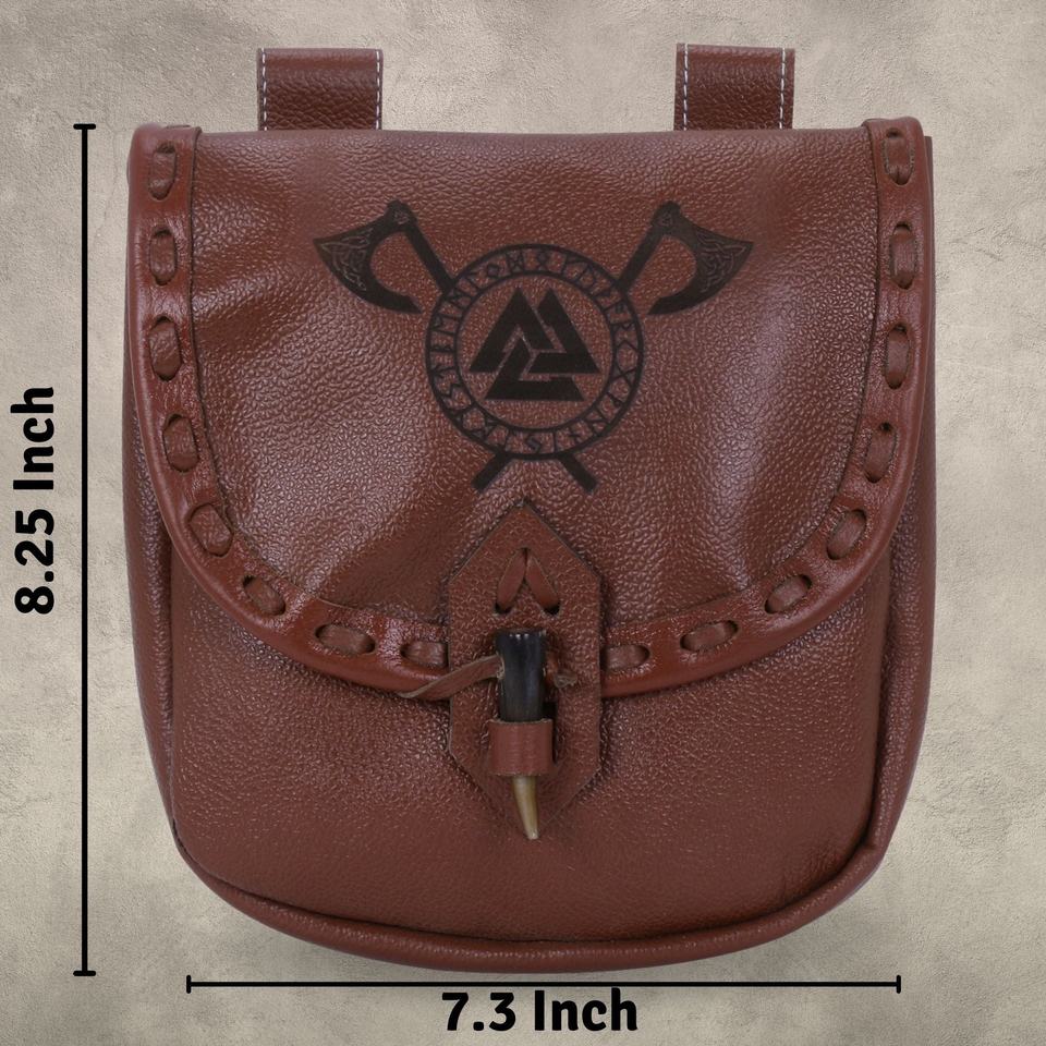 Renaissance Waist Belt Pouch Bag with Drawstring Genuine Leather Viking Costume Outfit Accessory, Handcrafted
