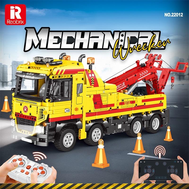 Reobrix 22012 Remote Control Wrecker Vehicle Building Block Model 800+ Pieces Electric Power Unassembled Kit for 8-13 Years