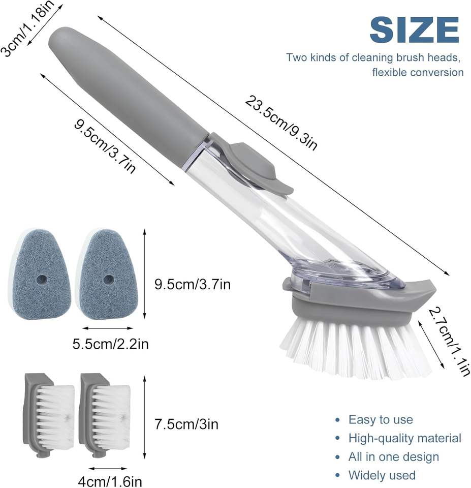 Replaceable Kitchen Dishwashing Sponge Cleaning Brush Scrub Dish Brush With Soap Dispenser