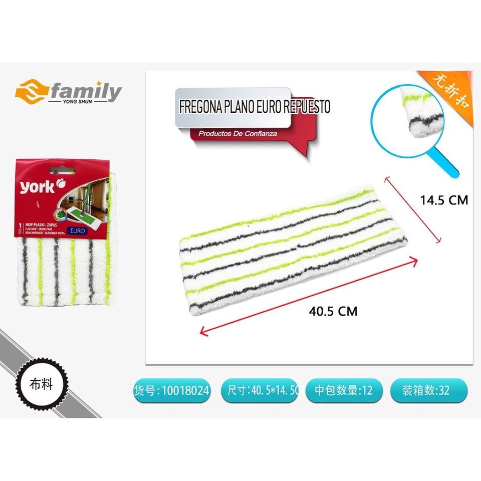 Replacement for euro-type flat mop for home cleaning